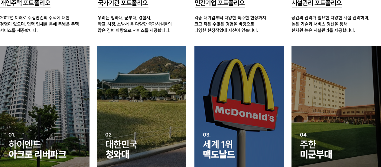우리는 다양한 공간들의 관리를 통한 건축물의 수명을 연장합니다.